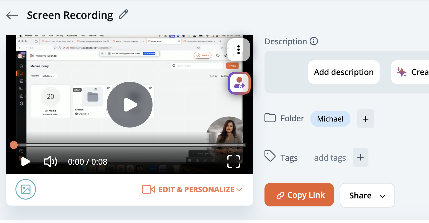 5. Hippo Video will add the Avatar and render the video. Once this is complete, the video is ready to be sent.